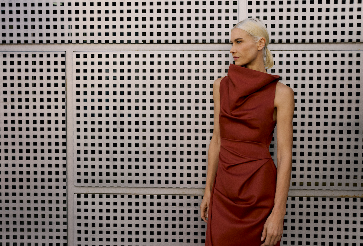 Draped Tailored Wool Dress